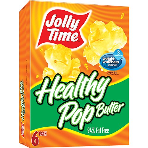 Healthy Pop 94% Fat Free Butter Microwave Popcorn delivers a great butter taste with hardly any fat. Endorsed by Weight Watchers, Healthy Pop is high in fiber and has just two grams of fat per serving. If you are counting your calories and looking for a low calorie snack, Jolly Time Healthy Pop Butter Popcorn contains only 20 calories per cup! That’s 100 calories per 5 cup serving. This diet popcorn has no saturated fats, no trans fats, and no cholesterol. Our healthy popcorn is also made with 100% whole grain, gluten-free, and non-GMO popcorn kernels. All this, plus the irresistible, taste of hot-buttered popcorn you crave. It’s the perfect healthy snack for your busy lifestyle. The high fiber content of Healthy Pop supports weight loss by filling you up so you don’t over-eat. One serving is equivalent to 3 Weight Watchers points. 100 calories per serving. You will be receiving 6 boxes of Jolly Time Healthy Pop Butter 94% Fat Free Microwave Popcorn. Each box contains six 3.5 oz. regular sized microwave popcorn bags – for a total of 36 bags of delicious, low fat butter popcorn that kids and adults will love to snack on!